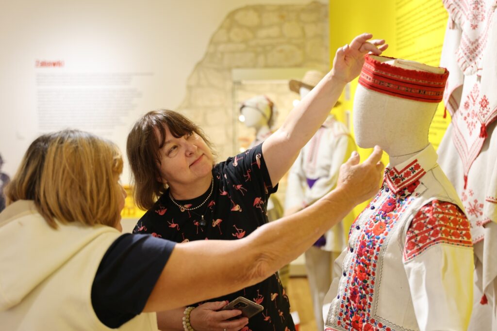 Omówienie wystawy przypadło w udziale jej kuratorowi Romanowi Zilince, a także znawczyni strojów ludowych i długoletniej pracownicy lwowskiego skansenu Liubow Swarnyk. Ukraińskim muzealnikom towarzyszył w tym zakresie Janusz Mazur, kustosz w Dziale Etnografii i Budownictwa Drewnianego Muzeum Kresów w Lubaczowie.
