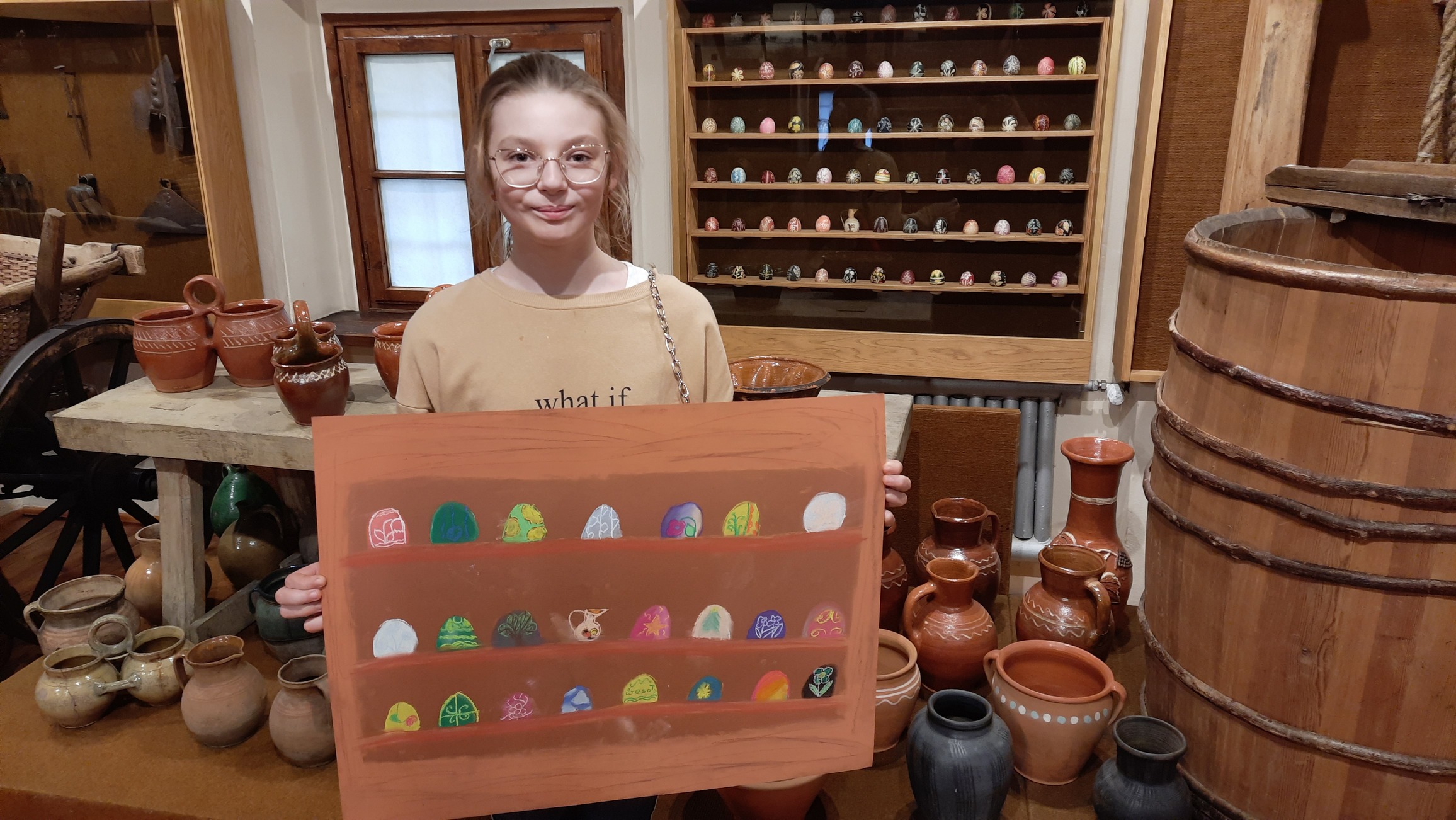 W pierwszy dzień muzealnych ferii, w środę, 18 stycznia, rozpoczęliśmy „Moją przygodę w muzeum”. Uczestnicy ferii  wyruszyli szlakiem muzealnych wystaw w poszukiwaniu przygód i twórczej inspiracji. Po chwili powstały pierwsze prace, małe dzieła sztuki rysowane i malowane w technice  suchego pastelu: fragmenty ekspozycji, gliniane garnki, kolekcja pisanek, pejzaże.