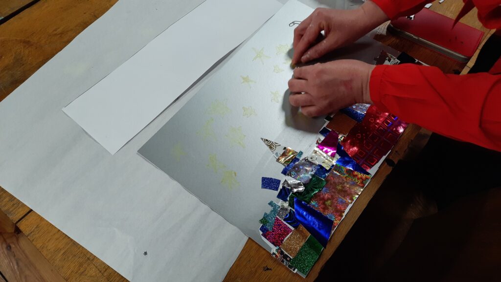 W czwartek były „Wycinanki, jak płatki śniegu”. Dzieci zapoznały się z historią wzornictwa i sposobami wykonywania ludowych wycinanek, po czym z pasją zabrały się do pracy. Wycinały z papieru wieloosiowe, kolorowe wycinanki. Zdobiły swoje dzieła, wykorzystując rozmaite techniki i układały w oryginalne, wielobarwne kompozycje.