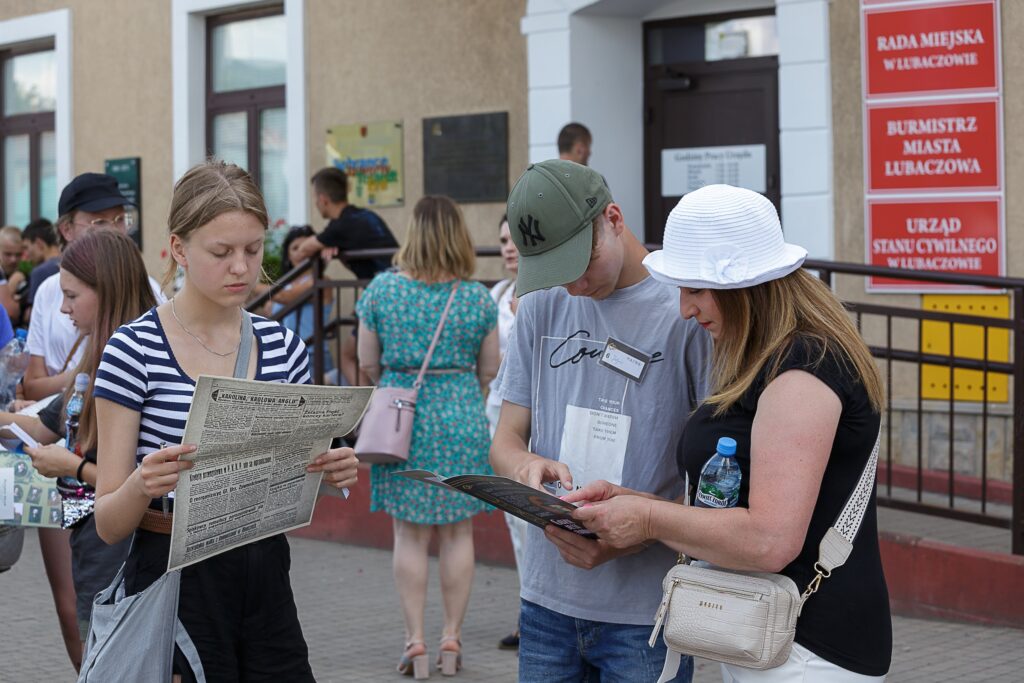 Świętowanie rozpoczęliśmy od rozgrywki gry terenowej „Gdzie jest radny?”, w czasie której kilkudziesięciu graczy z 15 drużyn przeniosło się do Lubaczowa sprzed stu laty, by przemierzać ulice miasta i dotrzeć do historycznych budynków i miejsc, gdzie czekali na nich rekonstruktorzy ze wskazówkami, co mogło stać się z radnym Stanisławem Kicińskim, który nie dotarł na posiedzenie Rady Powiatu.