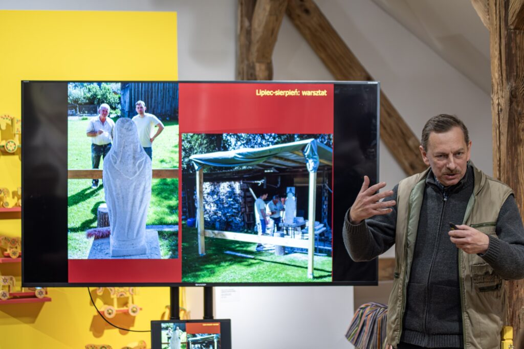 Przybyli również Józef i Marek Lewkowiczowie, rzeźbiarze w kamieniu, stypendyści Narodowego Instytutu Dziedzictwa i Kultury Wsi w Warszawie. W ramach programu „Mistrz-Uczeń” obydwaj artyści kontynuując tradycje kamieniarstwa bruśnieńskiego zrealizowali kamienną rzeźbę Matki Bożej Niepokalanej. Została ona po raz pierwszy zaprezentowana na spotkaniu, a docelowo wzbogaci walory kulturowe tzw. dużego cmentarza w Radrużu. Cieszyła także obecność gości z Ukrainy, którzy zainteresowani są wspólnym dziedzictwem kamieniarstwa bruśnieńskiego. Wyzwania w zakresie jego ochrony obejmują także tereny po drugiej stronie polsko-ukraińskiej granicy.