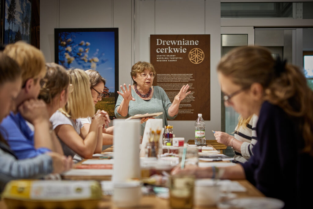 By wzbogacić program wydarzeń, nasze Muzeum udostępniło do darmowego zwiedzania z przewodnikiem oba swoje oddziały: Zespół Cerkiewny w Nowym Bruśnie oraz Zespół Cerkiewny w Radrużu. W tym ostatnim, w budynku muzealnym, zorganizowane zostały także warsztaty pisania ikon, które poprowadziła znawczyni tematyki i doświadczona ikonopisarka – Jadwiga Denisiuk z pracowni Veraikon w Cisnej. Natomiast w samym Lubaczowie odbyły się dwa spacery miejskie. W czasie pierwszego dnia uczestnicy udali się w podróż po wielokulturowym Lubaczowie, a z kolei dnia drugiego kroczyli śladami Mariana Kopfa – lubaczowskiego artysty, malarza, który w swoich pracach uwiecznił nasze miasto z czasów II wojny światowej.
