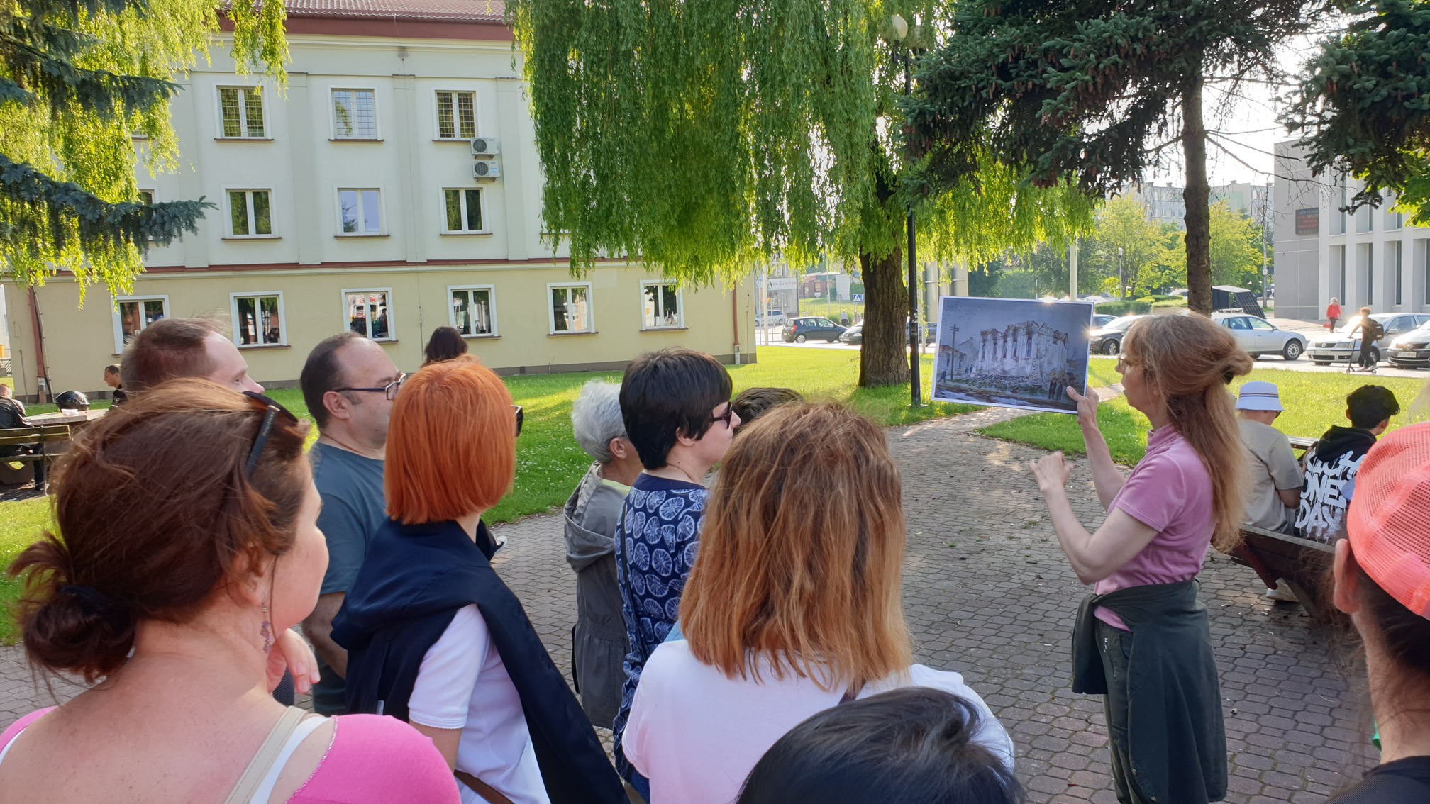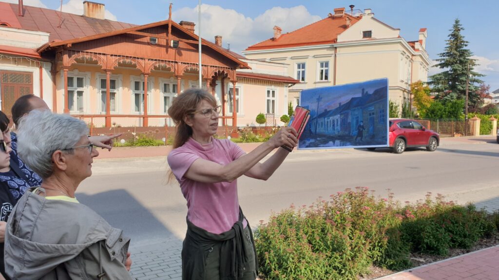 W dniach 17–18 czerwca miałam przyjemność poprowadzić dwa spacery edukacyjne po Lubaczowie. Pierwszego dnia mile zaskoczyła mnie liczba spacerowiczów, którzy, mimo niesprzyjającej pogody, chcieli wraz ze mną przemierzać miasto w poszukiwaniu śladów jego dawnej wielokulturowości. Ze szczególnym zainteresowaniem spotkała się nasza nowa oferta spaceru śladem Mariana Kopfa, w czasie którego uczestnicy mieli doskonałą okazję, by porównać uwiecznioną na obrazach artysty architekturę naszego miasta sprzed kilkudziesięciu lat ze współczesnym wyglądem budynków. Wielką satysfakcję sprawiło mi opowiadanie o dawnych dziejach Lubaczowa ludziom, którzy z zaangażowaniem słuchali i jednocześnie dopytywali o interesujące ich wątki. Serdecznie dziękuję im za wiele dobrych słów, które dane mi było od nich usłyszeć.