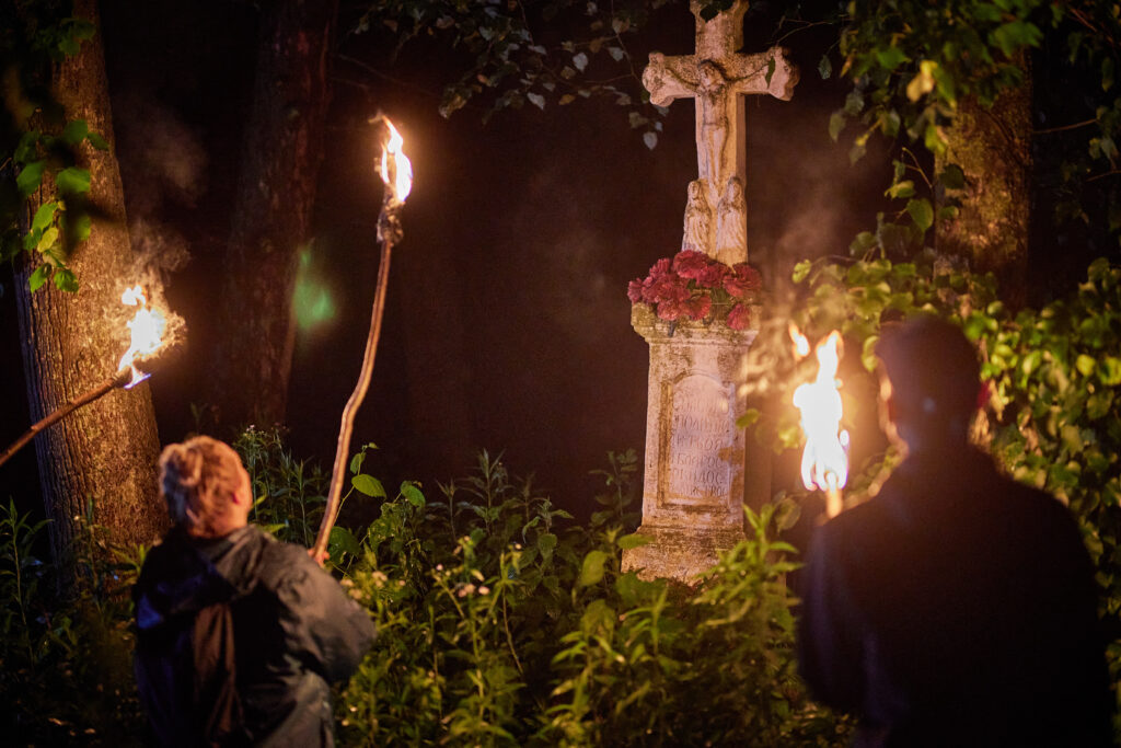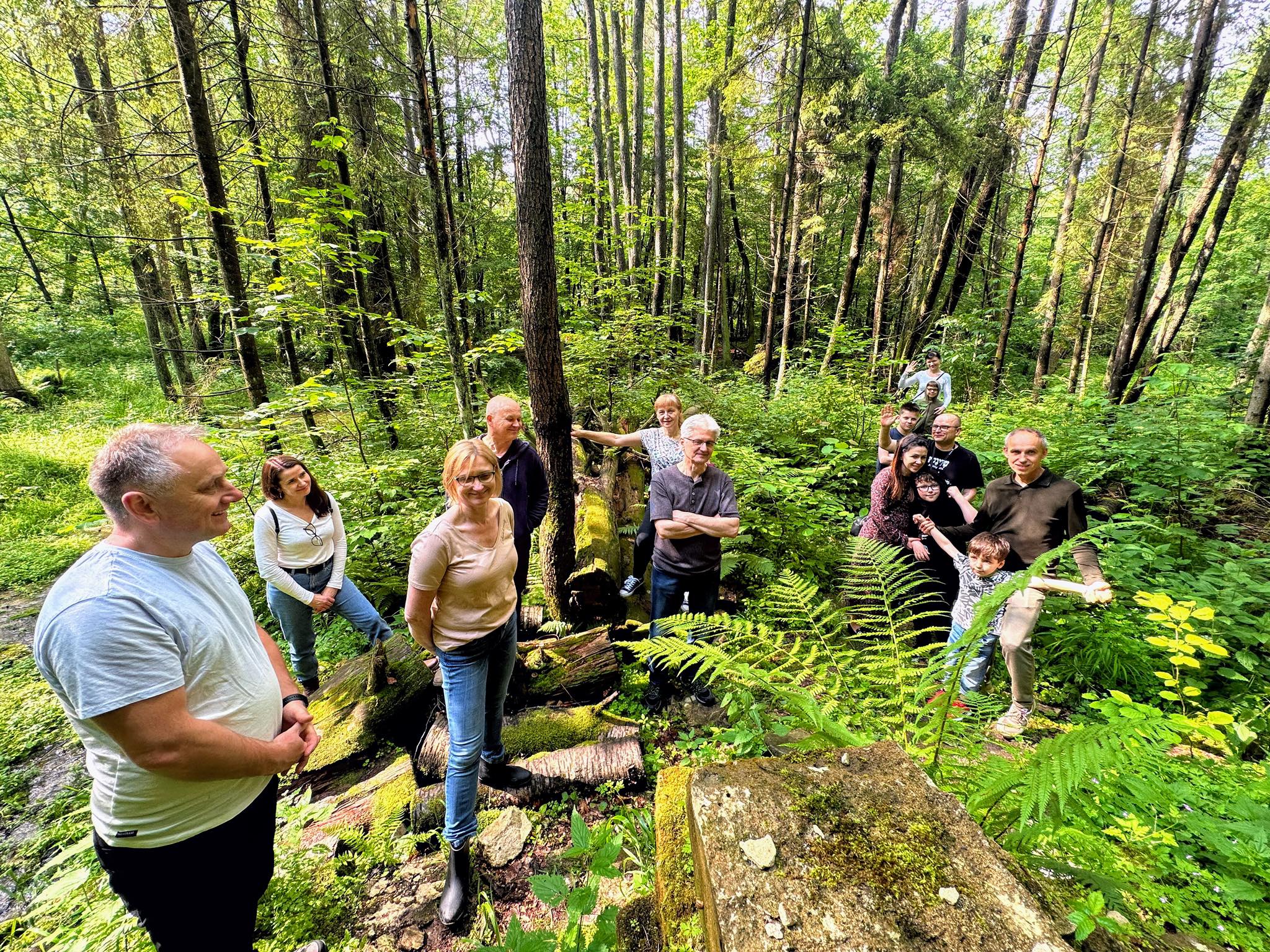 W niedzielny, czerwcowy dzień nawet niebo przestało płakać, aby ścieżki wiodące turystów w głąb bruśnieńskiego interioru okazały się do przebycia. Pokraśniała w blasku promieni słonecznych cerkiew pw. św. Paraskewy w Nowym Bruśnie a południowe okna omiecione ciepłym światłem przeniosły je do wnętrza – ocieplając i otulając przestrzeń czekającą na wypełnienie, ponowne zagospodarowanie. Szwabacha nagrobków niemieckich kolonistów stała się jakby bardziej czytelna i zrozumiała a dwie Maryjki spod bruśnieńskich krzyży zdawały się przychylnie pochylać głowy – ku Wam drodzy odwiedzający. Ożywiliście swoją obecnością nieożywione a nawet nieistniejące… przywołując wspomnienia minionych czasów i ludzi – kamieniarzy „spod góry”, kolonistów szukających daleko od domu lepszego bytu, żołnierzy których krew wrosła w roztoczański piach… Praca dla Was i z Wami była dla mnie zaszczytem. Z przewodnickim pozdrowieniem!