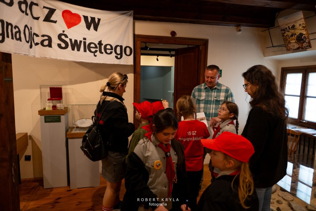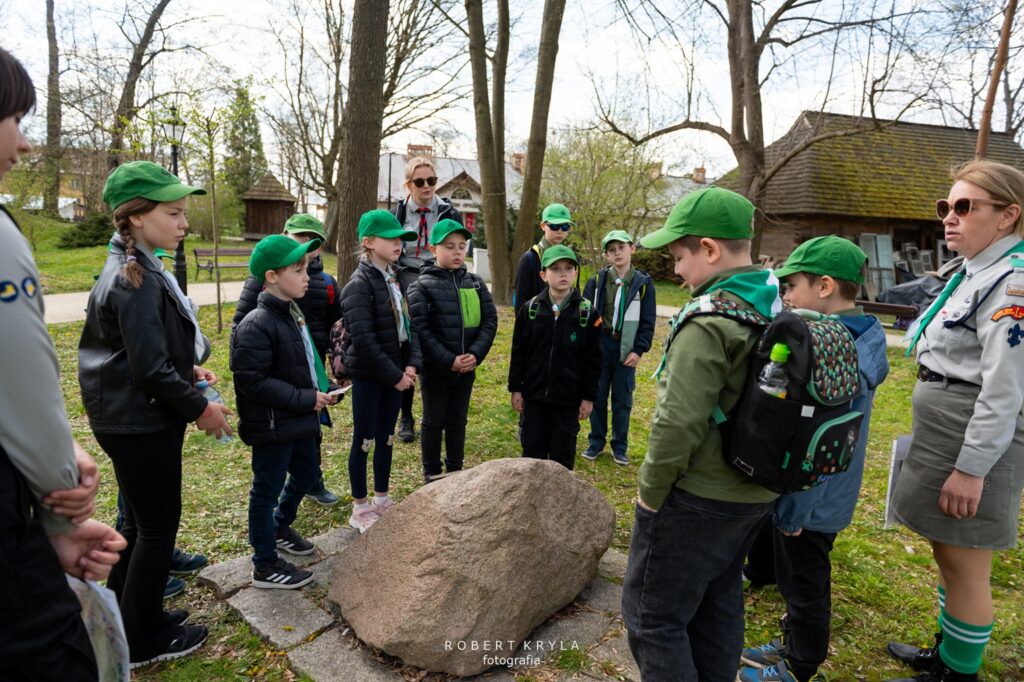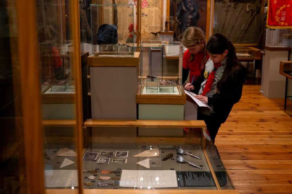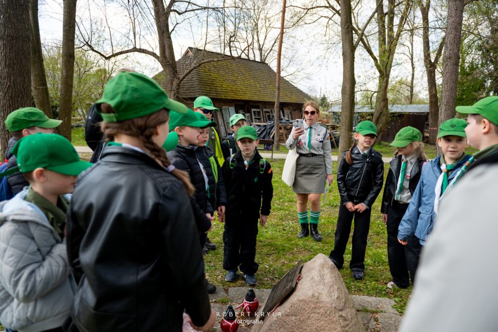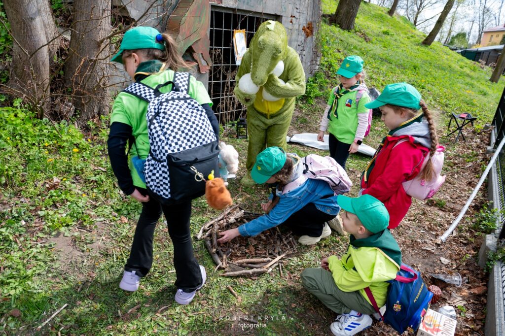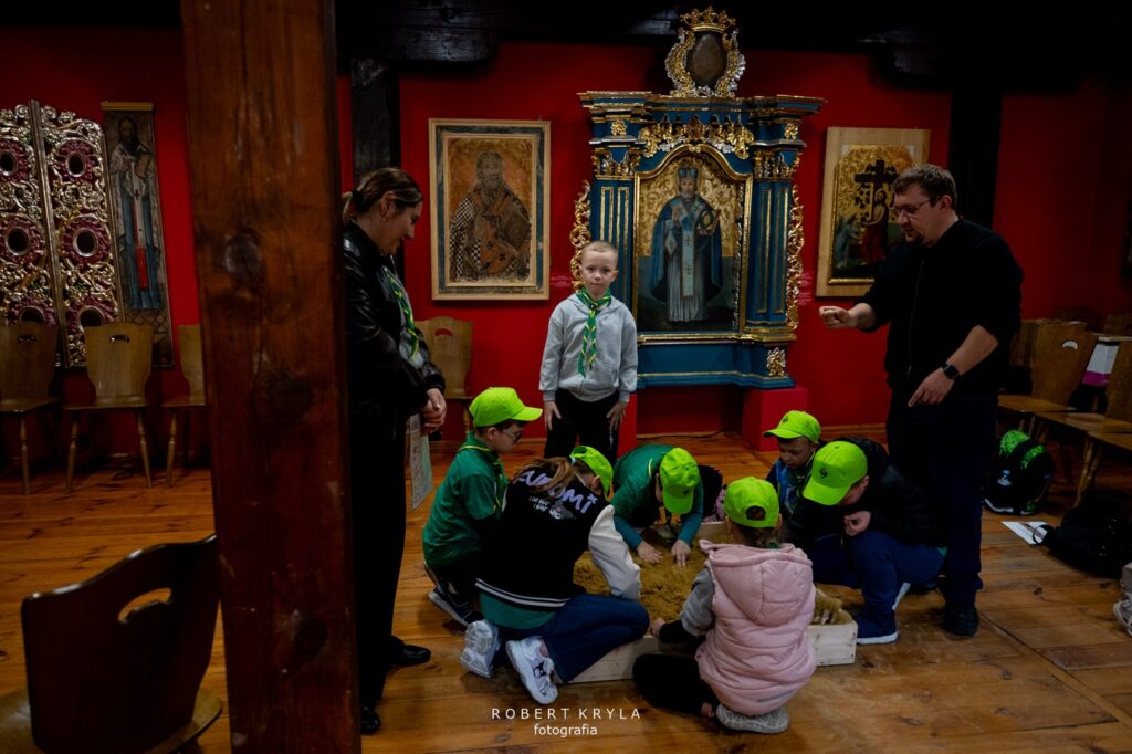Jednym z punktów na trasie było Muzeum Kresów w Lubaczowie, które również włączyło się w organizację złazu. W budynku głównego gmachu na zuchy czekały dwa zadania, które wprowadziły uczestników w świat historii i nauki. Już od progu placówka wypełniła się naturalną, dziecięcą ciekawością poznawania świata oraz radością biorących udział w zmaganiach. Pierwszym wyzwaniem było poznanie pracy archeologa, którą przybliżył pracownik muzeum Grzegorz Dąbrowski. Zuchy wcieliły się w rolę poszukiwaczy dawnych artefaktów. Ich zadaniem było odnalezienie „skarbów” ukrytych w ziemi, co stało się dla nich nie tylko formą zabawy, ale również okazją do doświadczenia, na czym polega praca poszukiwacza zabytków. Dzieci z dużym zaangażowaniem przeszukiwały wyznaczone miejsce, mogąc przez chwilę poczuć się jak prawdziwi archeolodzy. Po zakończeniu tego etapu na uczestników czekało kolejne zadanie, związane z wystawą historyczną. Tym razem zuchy musiały odnaleźć ukryte litery, które posłużyły do ułożenia haseł niezbędnych do wykonania zadania. W realizacji tego wyzwania pomagał Dariusz Sałek, który wprowadzał dzieci w tematykę ekspozycji i przybliżał im historię oraz zabytki regionu. Dzięki temu zadanie miało nie tylko charakter rozrywkowy, ale również edukacyjny, pozwalając uczestnikom lepiej poznać dziedzictwo naszej okolicy.
