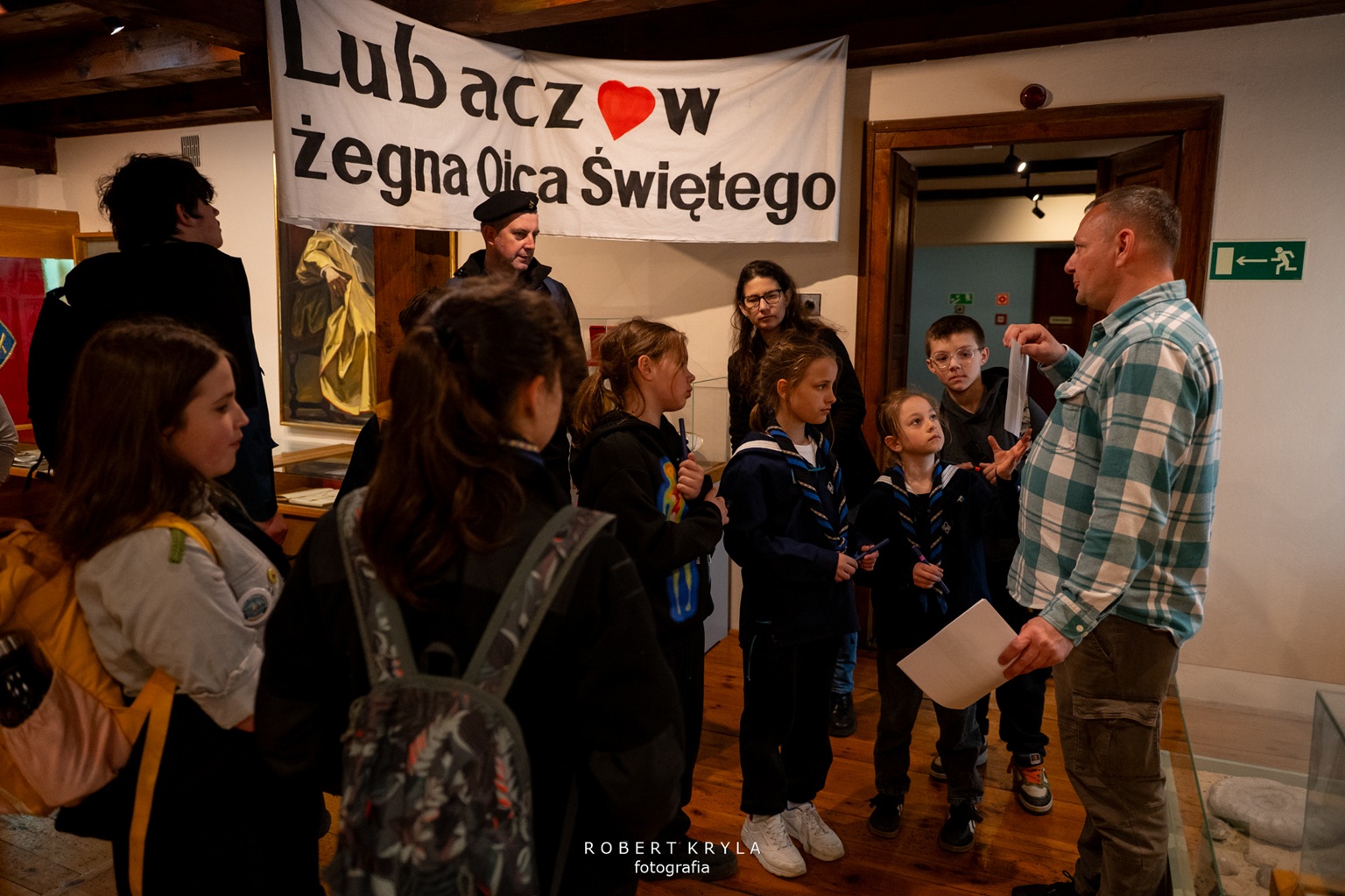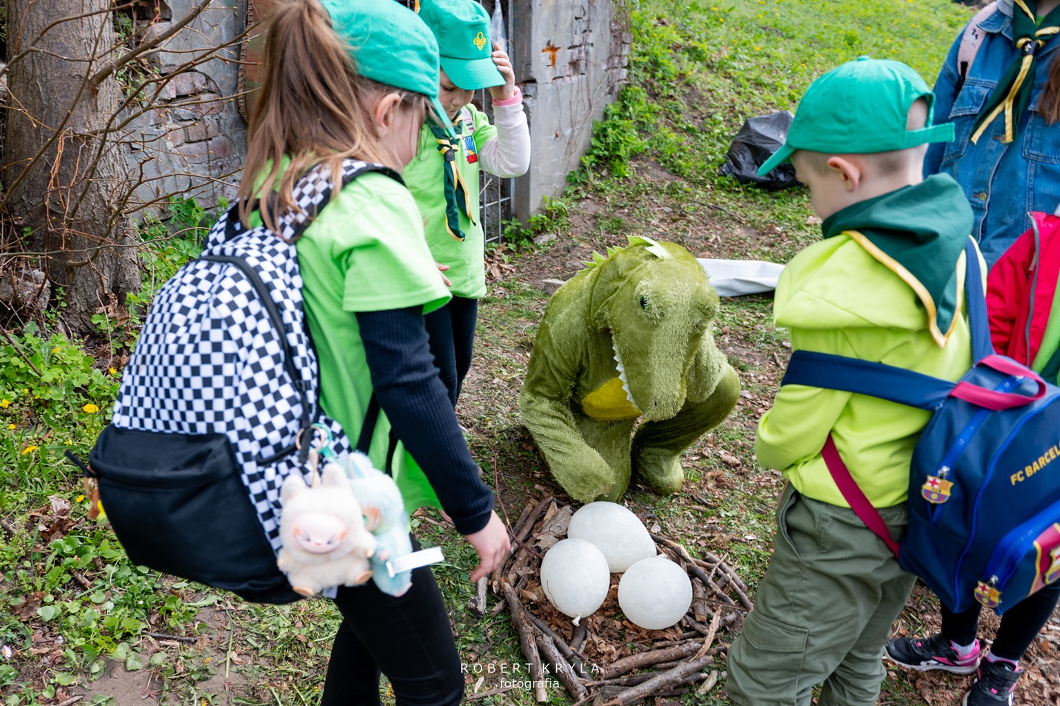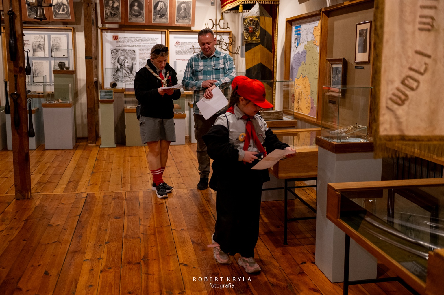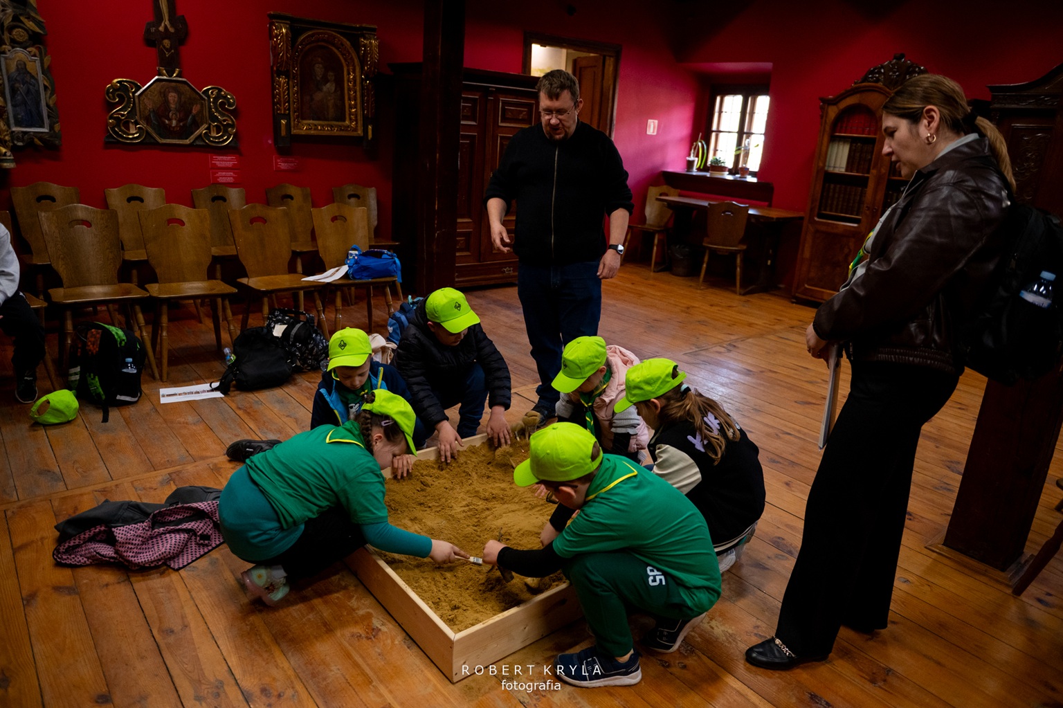 Jednym z punktów na trasie było Muzeum Kresów w Lubaczowie, które również włączyło się w organizację złazu. W budynku głównego gmachu na zuchy czekały dwa zadania, które wprowadziły uczestników w świat historii i nauki. Już od progu placówka wypełniła się naturalną, dziecięcą ciekawością poznawania świata oraz radością biorących udział w zmaganiach. Pierwszym wyzwaniem było poznanie pracy archeologa, którą przybliżył pracownik muzeum Grzegorz Dąbrowski. Zuchy wcieliły się w rolę poszukiwaczy dawnych artefaktów. Ich zadaniem było odnalezienie „skarbów” ukrytych w ziemi, co stało się dla nich nie tylko formą zabawy, ale również okazją do doświadczenia, na czym polega praca poszukiwacza zabytków. Dzieci z dużym zaangażowaniem przeszukiwały wyznaczone miejsce, mogąc przez chwilę poczuć się jak prawdziwi archeolodzy. Po zakończeniu tego etapu na uczestników czekało kolejne zadanie, związane z wystawą historyczną. Tym razem zuchy musiały odnaleźć ukryte litery, które posłużyły do ułożenia haseł niezbędnych do wykonania zadania. W realizacji tego wyzwania pomagał Dariusz Sałek, który wprowadzał dzieci w tematykę ekspozycji i przybliżał im historię oraz zabytki regionu. Dzięki temu zadanie miało nie tylko charakter rozrywkowy, ale również edukacyjny, pozwalając uczestnikom lepiej poznać dziedzictwo naszej okolicy.