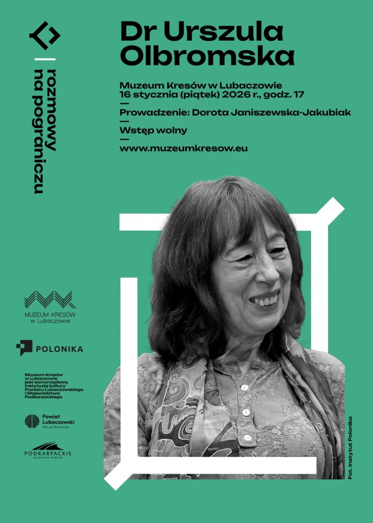 W piątek, 16 stycznia 2026 r., o godz. 17 serdecznie zapraszamy do Muzeum Kresów w Lubaczowie na jedenastą z kolei „Rozmowę na Pograniczu”. Rozmawiać będziemy z dr Urszulą Olbromską o jej najnowszej książce „O pamięci w kamieniu wyrytej… Polskie mogiły na cmentarzach pogranicza polsko-ukraińskiego”. Partnerem spotkania jest Narodowy Instytut Polskiego Dziedzictwa Kulturowego za Granicą POLONIKA.
