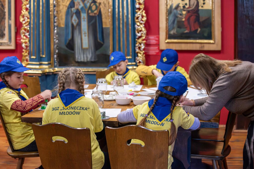 Ostatni dzień „Ferii w muzeum” upłynął na spotkaniu z ikoną. W otoczeniu świętych obrazów mali twórcy malowali swoje pierwsze ikony. Dowiedzieli się też, jak powstawała ikona, gdzie można ją spotkać oraz czy dzisiaj także powstają „święte obrazy”.