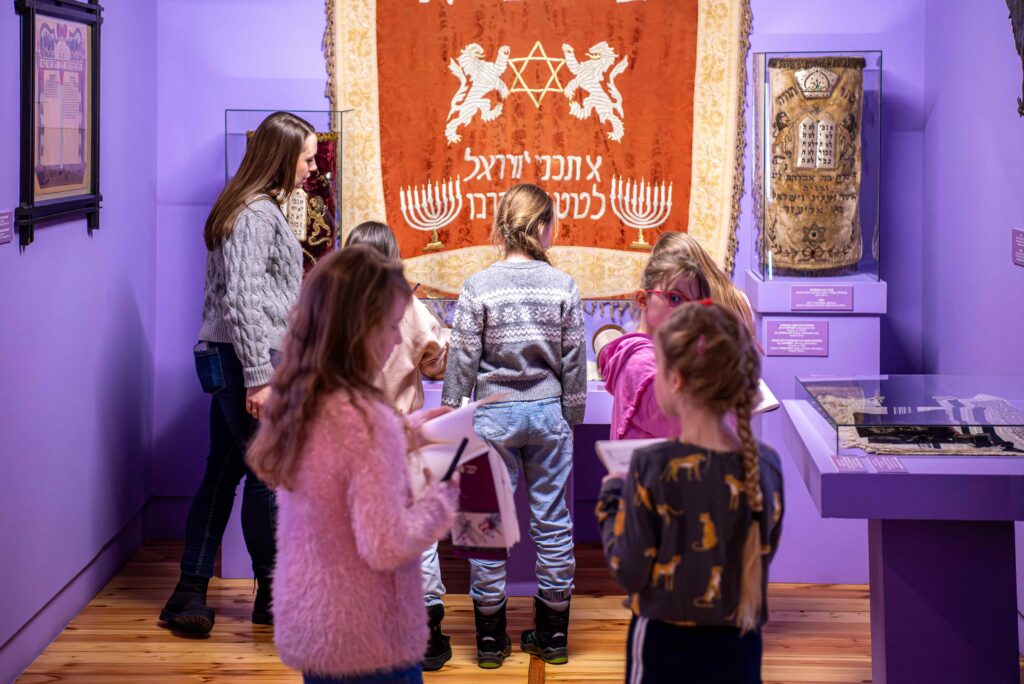 Kolejnego dnia ferii ze szkicownikami i ołówkami w dłoni ruszyliśmy szlakiem muzealnych wystaw. Dzieci szkicowały najciekawsze ich zdaniem zabytki: fragmenty obrazów, rzeźby, świeczniki, lampy chanukowe, gliniane garnki… Wszystko w myśl zasady, że kiedy rysujesz widzisz więcej. W muzealnym szkicowniku można też było zapisywać własne spostrzeżenia i refleksje.